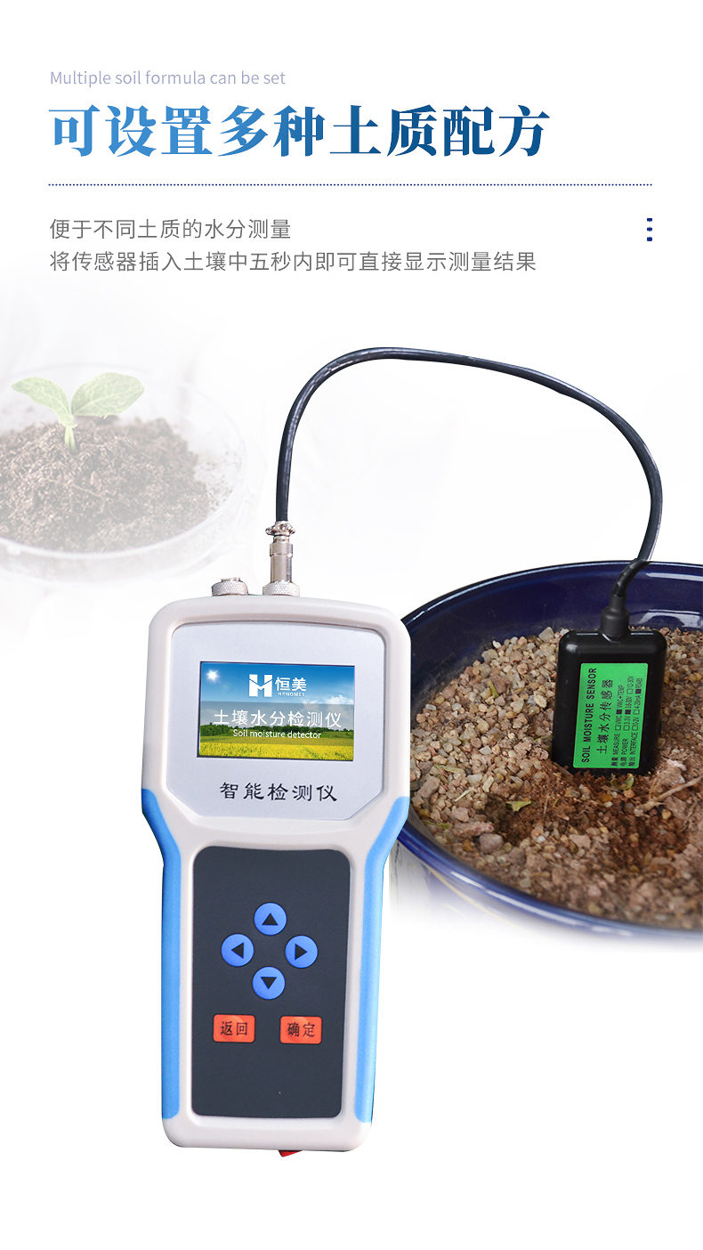 5、儀表可設(shè)置多種土質(zhì)配方,便于不同土質(zhì)的水分測(cè)量。
