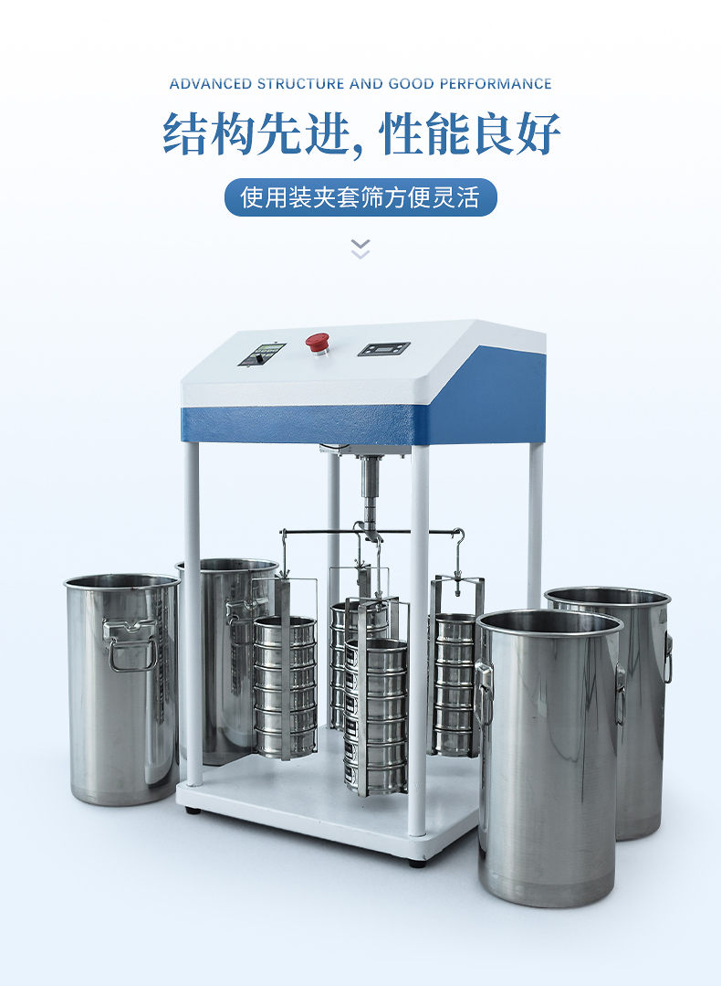 3、結(jié)構(gòu)先進(jìn),性能良好,使用裝夾套篩方便靈活。
