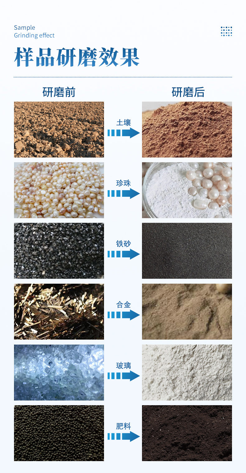 實驗室研磨機適用于土壤、地質、環保、第三方檢測、農牧業、農產品質量、資源與環境等行業,可以對土壤制樣、重金屬等物質進行研磨分析;對不同特征的樣品均可研磨,包括脆性的,纖維性的,中低硬度的,干磨或濕磨等等;